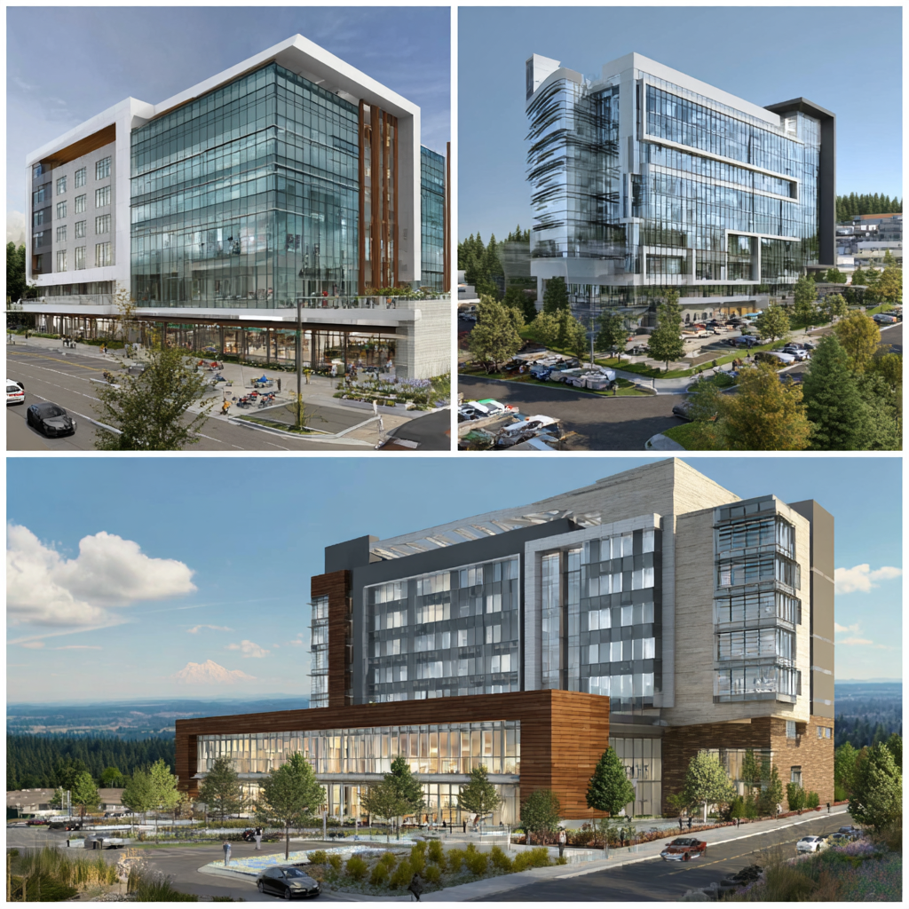 In Oregon, for example, the metro area around Portland, Oregon remains the region’s most active development hub as we’ve discussed before. New projects range from mixed-use office/housing districts to industrial and logistics nodes near the port. One particularly notable development is the expansion at Oregon Health & Science University (OHSU): a 14-story hospital expansion on Marquam Hill, estimated at $650 million and slated to open in 2026, underlines healthcare’s central role in the region’s current commercial pipeline.